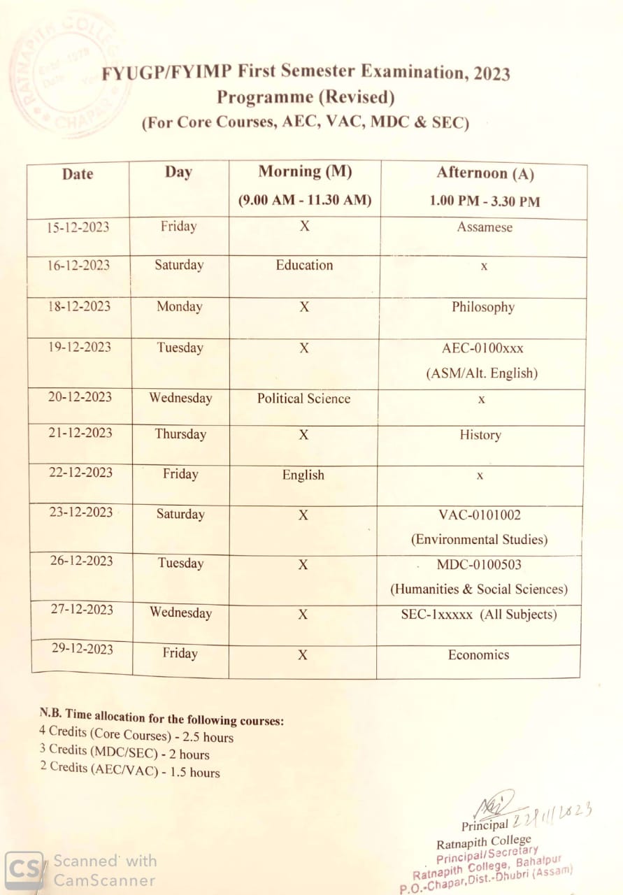 - Admit Card/Attestation Sheet FYUGP 1st Semester Examination' 2024 View
