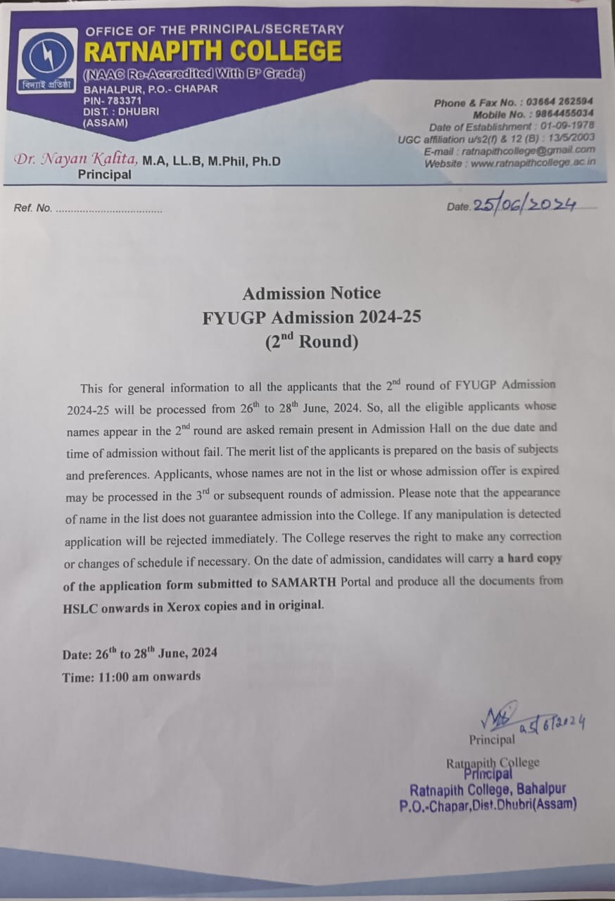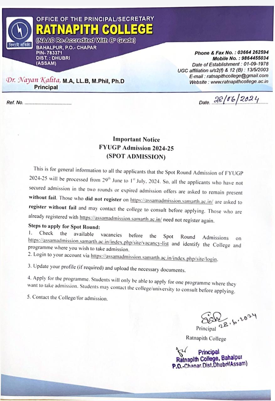 - Important notice regarding SPOT ADMISSION under FYUGP 2024-25 View