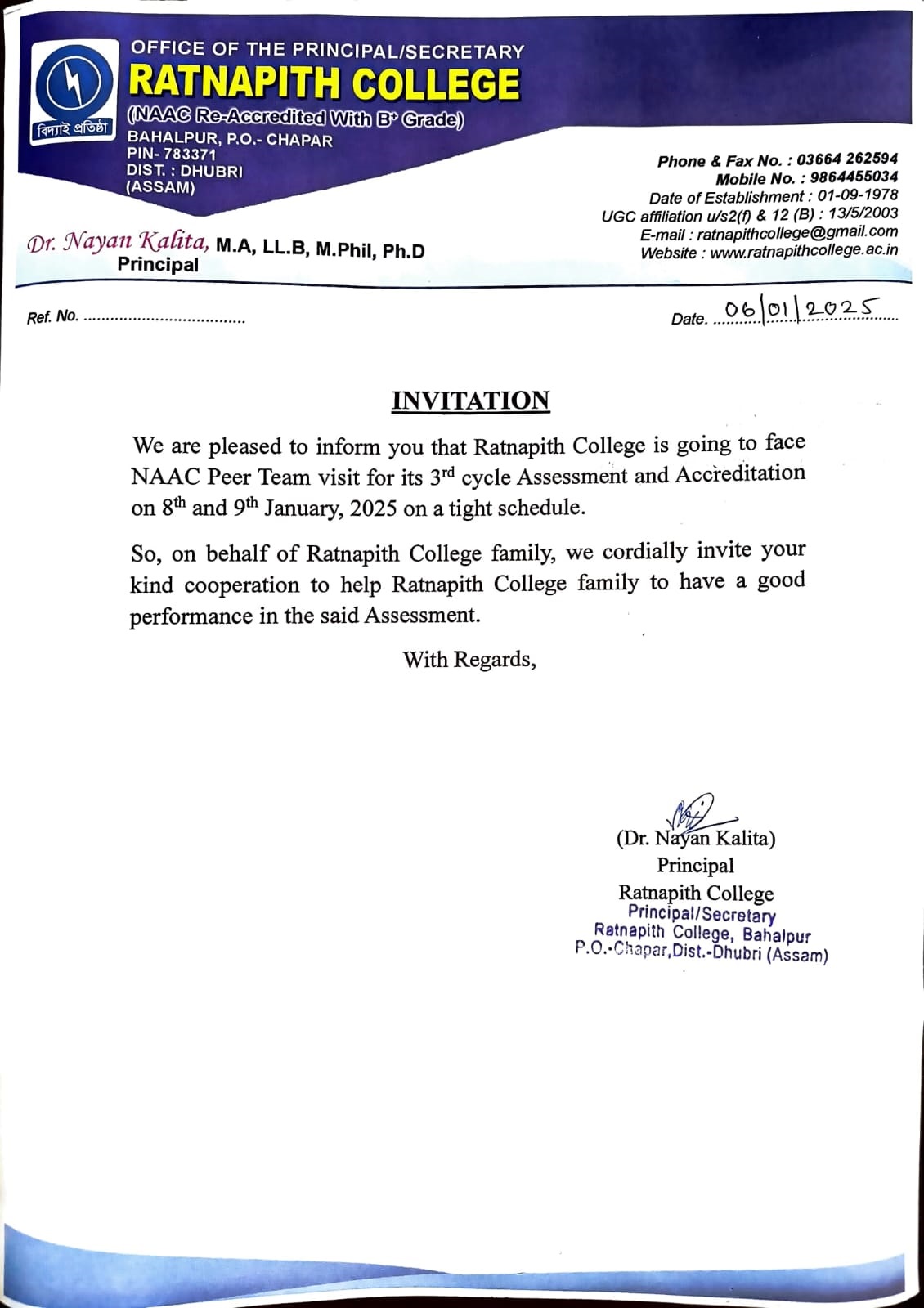 - Invitation for kind cooperation of stakeholders in NAAC visit on 8th and 9th January, 2025 View