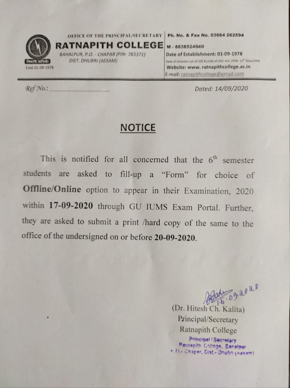 - 1st & 3rd Semester Exam Form fill up Notice View