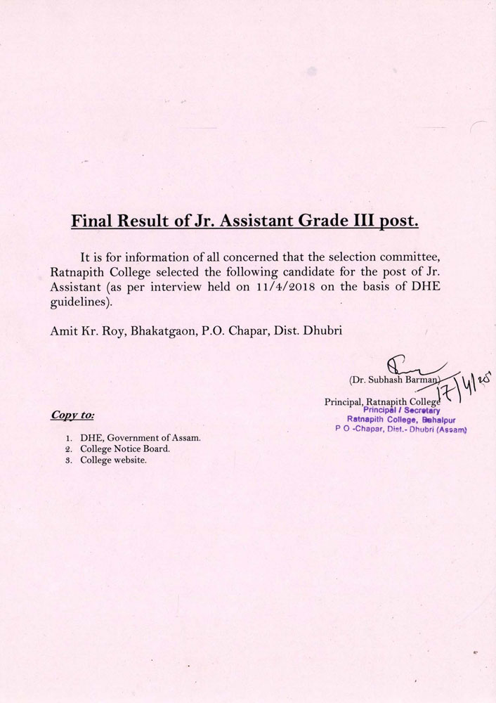 - Interview Notice for the post of Assistant Professor of Political Science & History View